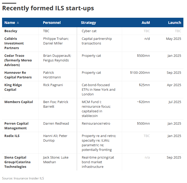 Several new ILS firms launched last year, with 2026 potentially a significant year of growth and development for these early-stage players. They include Hannover Re Capital Partners and a new ILS vehicle from Beazley – both Bermuda-based spin-offs of major global carriers.