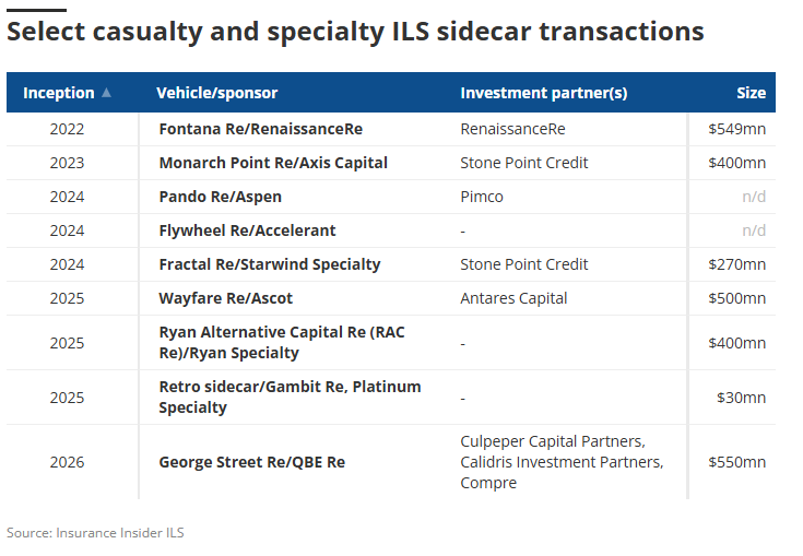 Casualty, specialty and multi-line sidecar growth is anticipated