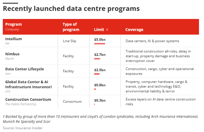 Launched last year for example, Aon has upped its Data Center Lifestyle Capacity Program to $2.5bn.